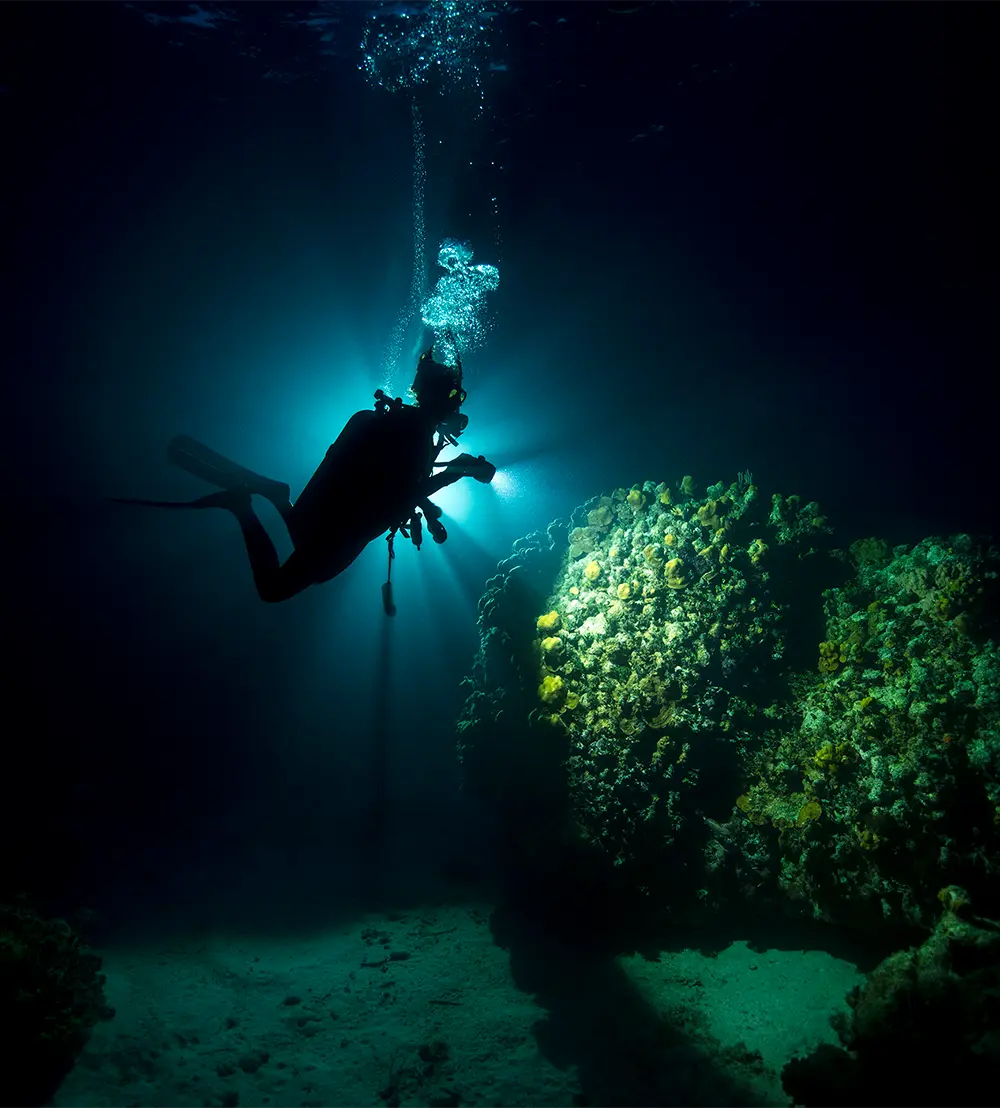 - Buceo nocturno guiado por un instructor de buceo o un Dive Master.