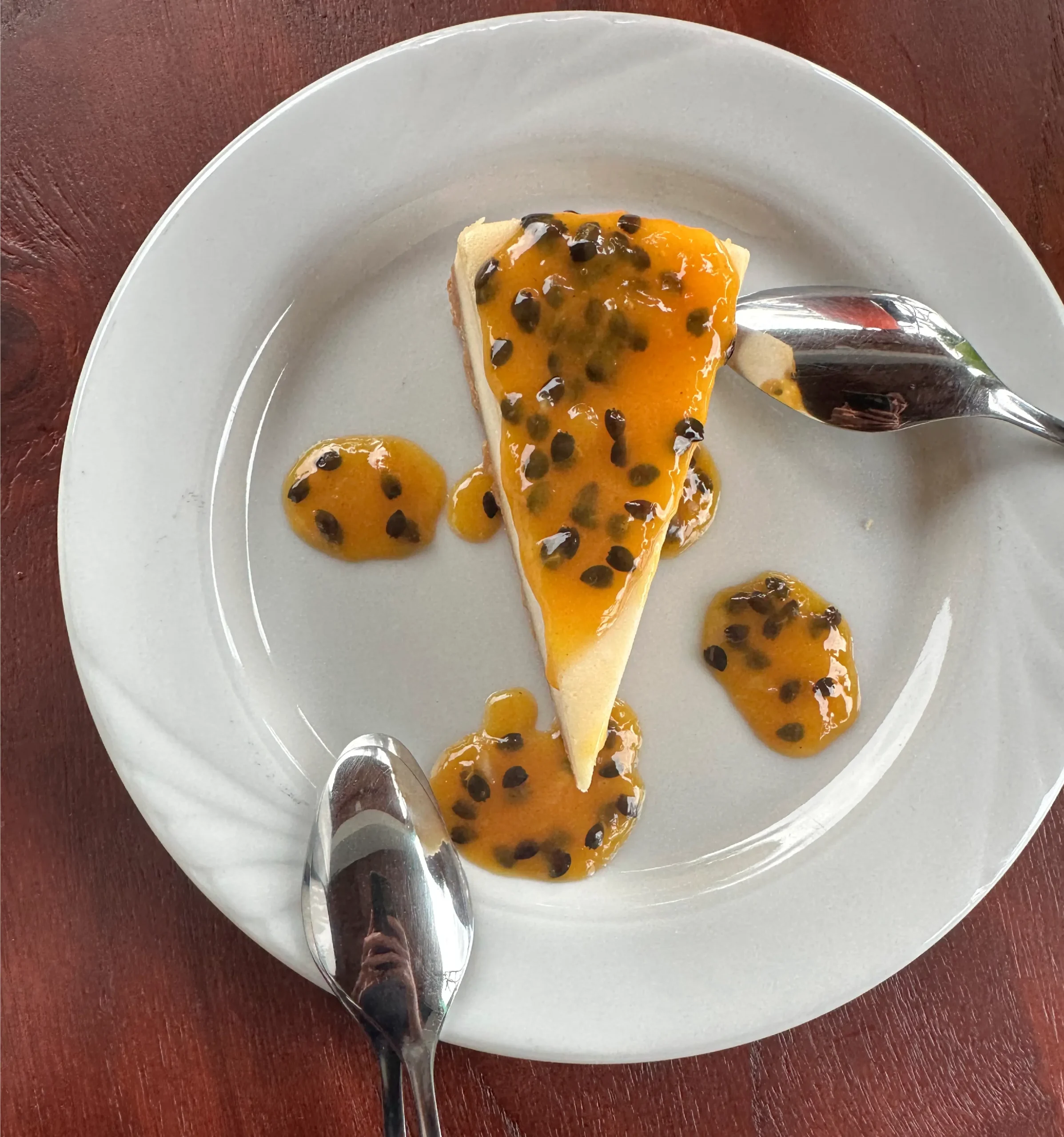 Pescado trozos, ensalada de repollo y mayo maracuyá.